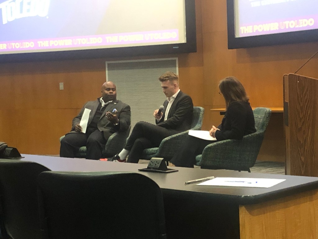 I got to campus around 2:30 in the afternoon to watch Bryan co-host a talk about artificial intelligence in sports. Sitting next to him was Ben Levicki, the AI solutions architect at the Cleveland Cavaliers. Toledo Athletics uses Microsoft Copilot across campus, and Bryan talked about how AI is becoming a bigger and bigger piece of athletic department operations. You can tell he’s leaning into this stuff early to see how Team Toledo can use it across the athletic department.