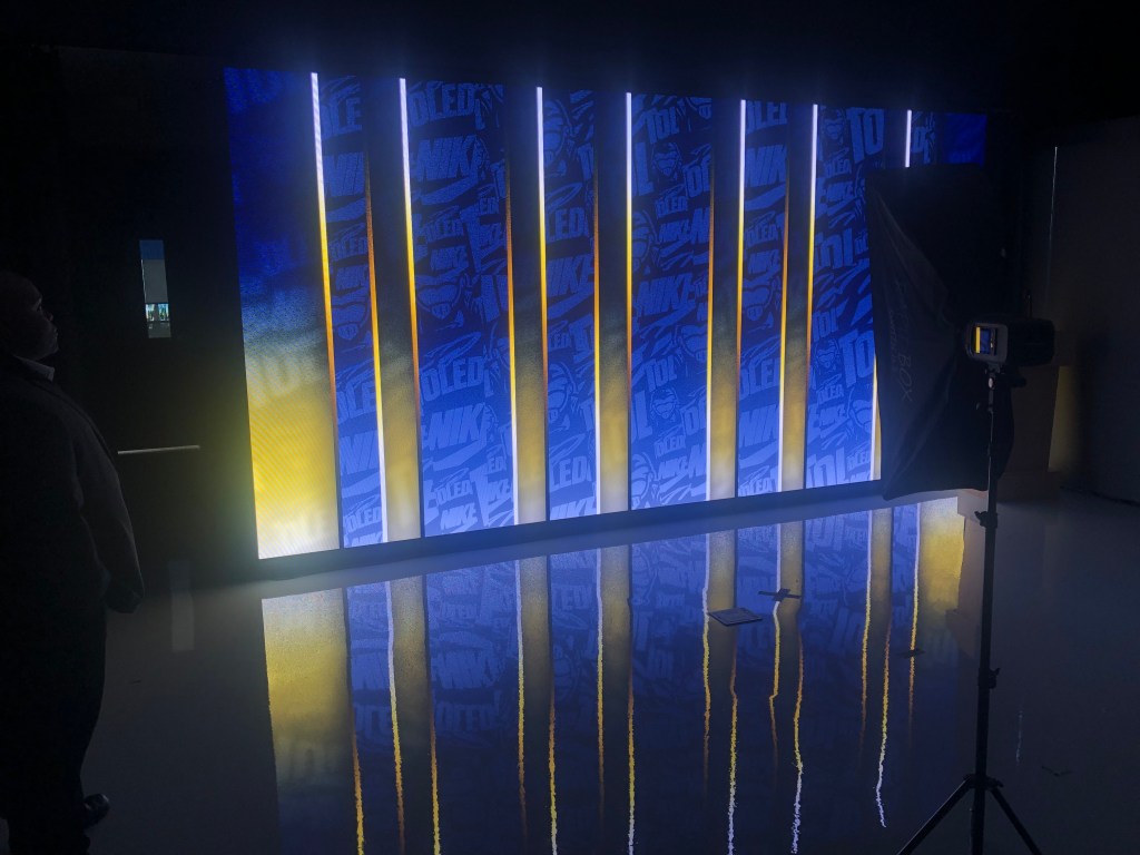 Right off the lobby is their creative studio with a digital wall that rivals setups you’d expect at a pro team. They use it for athlete photo shoots and team press conferences. You could tell this was important to Bryan — making sure his creative team has the tools they need.